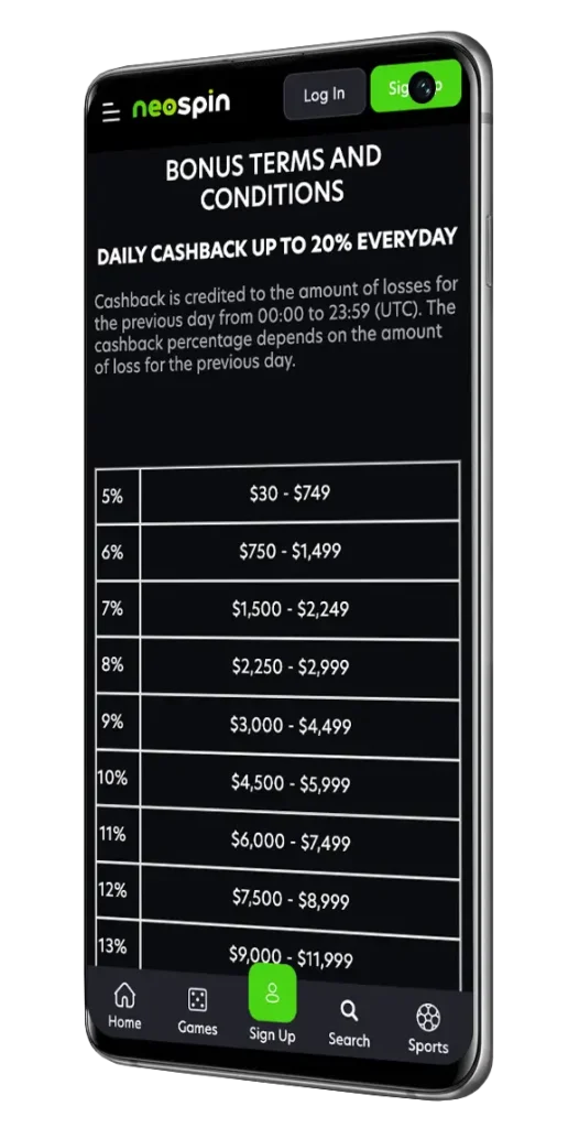 Regular players are not left out of the excitement because our website has designed lots of NeoSpin promotions that all players can benefit from. It includes 66% Weekend Reload Bonus up to 1,000 AUD, Wednesday Free Spins up to 100 FS and Daily Cashback up to 20% on every deposit. Some of the standout promotions are described below.